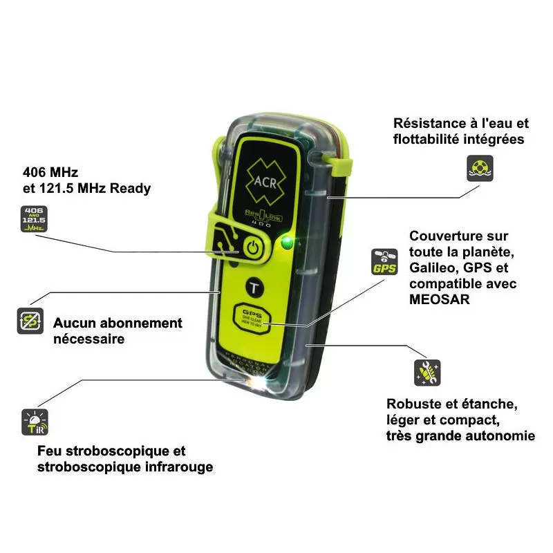 La balise de détresse ACR Resqlink 400 PLB en détail :
