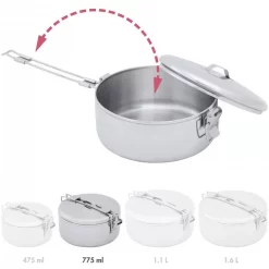 Si le plus important pour vous dans le choix d’une popote, c’est la légèreté ou l’efficacité, le modèle Ceramic Pot de chez MSR devrait vous plaire. Jugez plutôt : c’est une popote pour 2 personnes avec un poids qui ne dépasse guère la barre des 300 grammes (302 grammes pour être exact). Surtout, c’est une popote antiadhésive avec une surface antiadhérente en céramique : les aliments n’adhérent pas à la surface de la casserole pour une cuisson mieux maitrisée. De plus, chaque popote MSR Ceramic Pot comprend un couvercle ultra pratique ainsi qu’une poignée pliable et amovible : le couvercle peut revêtir la fonction de passoire, peut servir à couvrir la casserole (pour éviter les éclaboussures ou pour une cuisson rapide) et peut même servir à refermer votre popote Ceramic Pot pendant le transport à l’aide de la poignée (qui peut basculer par-dessus le couvercle). Donc son transport est facile.